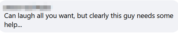 “Can laugh all you want, but clearly this guy needs some help,” one Facebook user wrote.