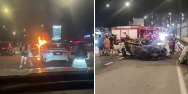 Man in M’sia sets wife’s car on fire in middle of highway after dispute, passengers run out of car screaming
