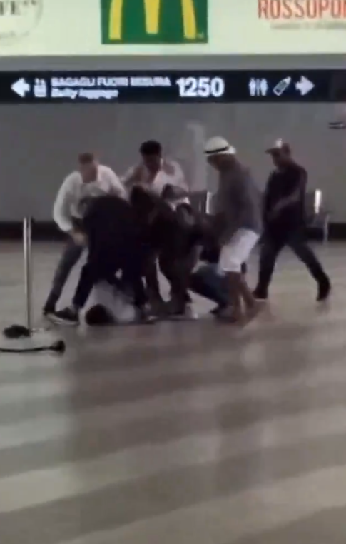 Nearby bystanders and airport security subsequently flocked to surround and pin him to the floor.