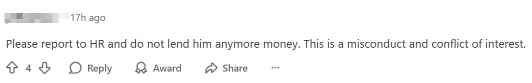 The issue was raised in a r/askSingapore post on 5 Jan, with the employee recounting their discomfort when their manager, who had been generally supportive, began requesting loans.