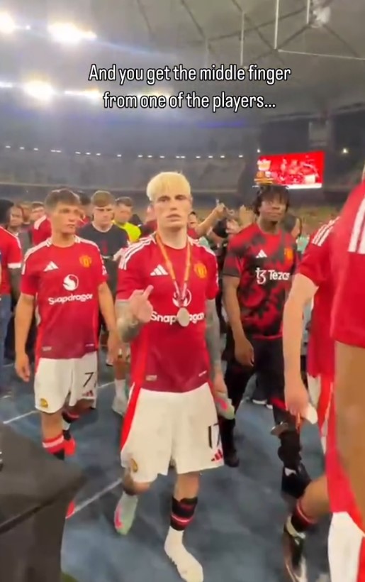 Strangely enough, both Amad and Garnacho were also seen pointing their middle fingers in a photo taken with other players and two fans.
