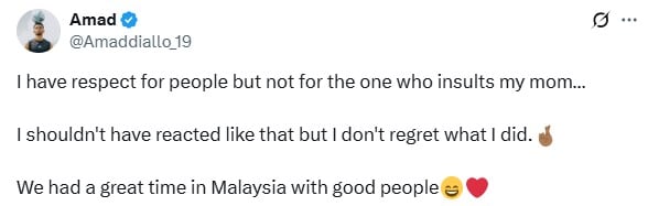 Amad responded to the criticism in a post on X on Thursday (29 May), implying that someone had insulted his mother.