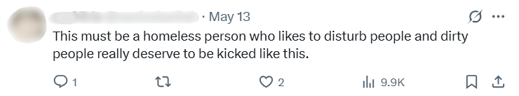 However, OP said throwing slippers would not solve the problem and added that the homeless man was not causing trouble when the staff began assaulting him.