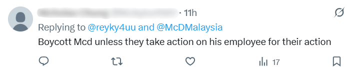 Others tagged McDonald’s Malaysia and the police in the comments, demanding they take action, including dismissing the three male staff involved, and calling on others to boycott the brand.