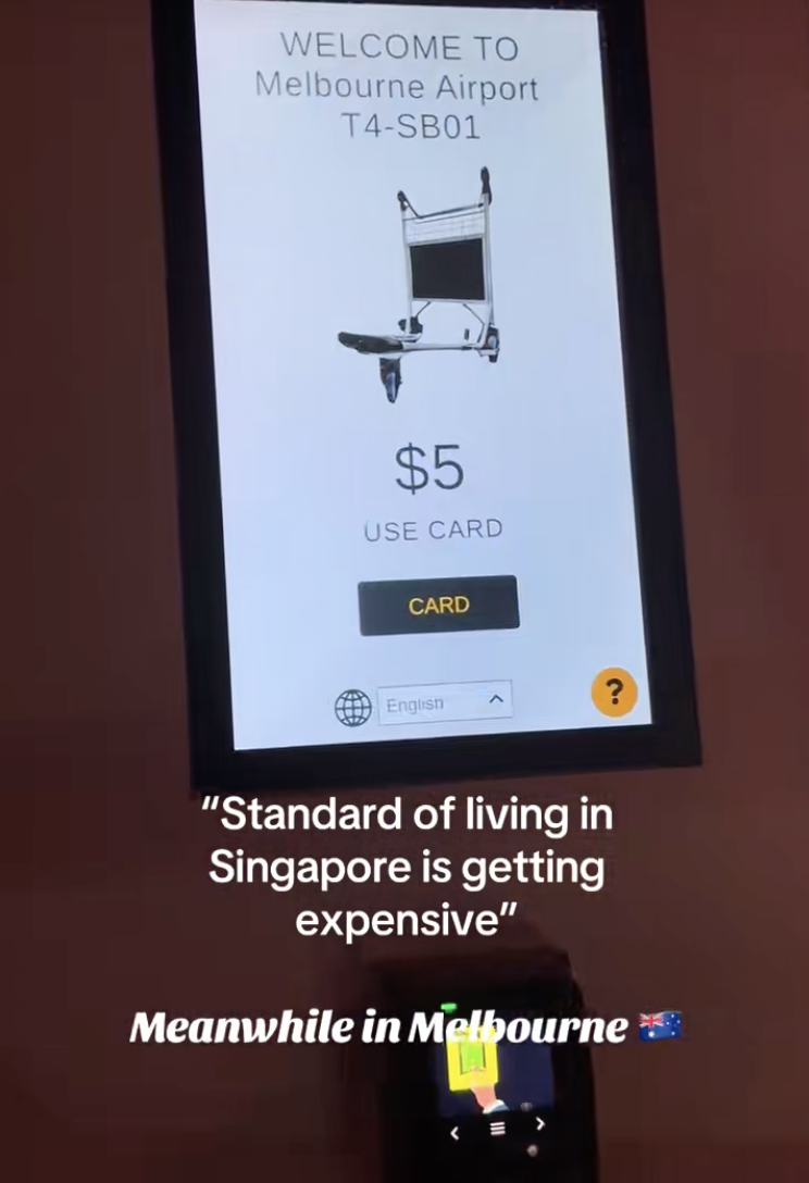 A Singapore TikToker was taken aback after discovering that it costs A$5 (S$4) to use a luggage trolley at Melbourne Airport.