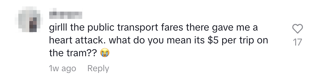 One commenter joked that Melbourne’s transport fares gave them a “heart attack”, pointing out that a single tram ride cost them S$5.