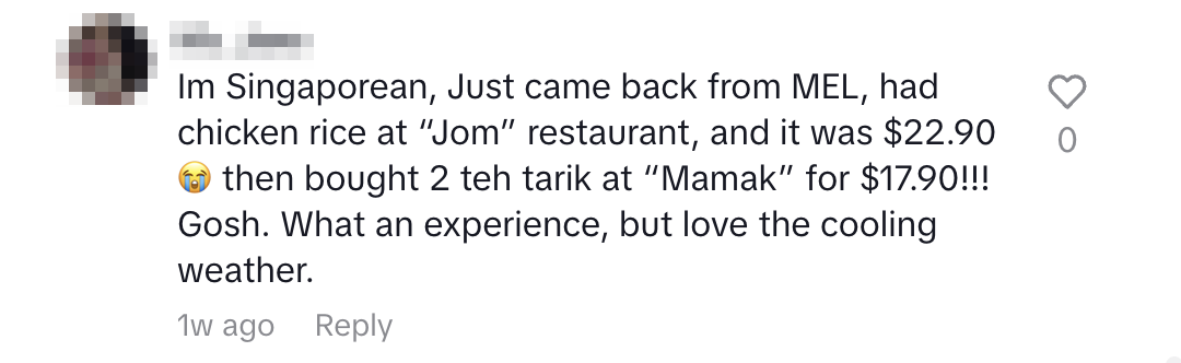 Another recalled paying S$22.90 for chicken rice and S$17.90 for two cups of teh tarik.
