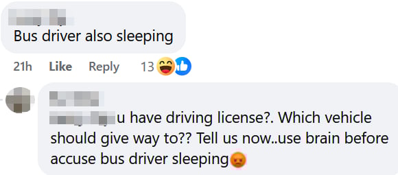 Another user replied to the comment, arguing that the bus driver had the right of way.