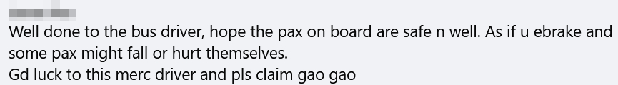 One concerned netizen hoped the passengers on board were safe as buses suddenly braking could result in them falling or getting hurt.