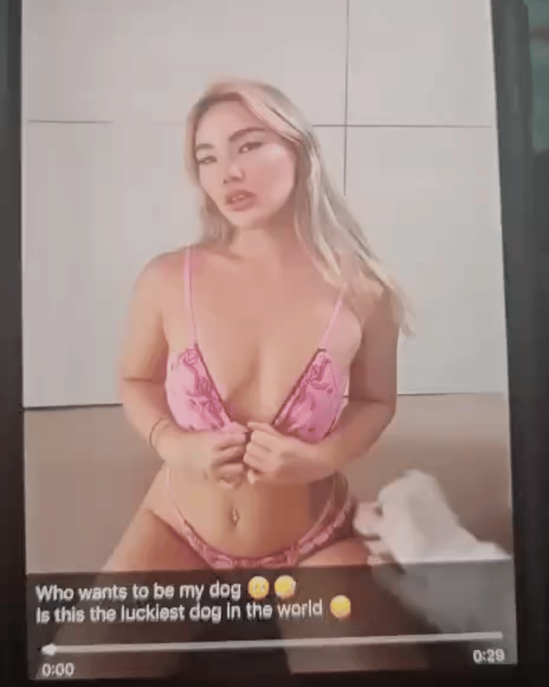 Separately, screenshots and videos shared by @factsgpt showed the creator posing in lingerie while her dog allegedly licked her private areas through the fabric.