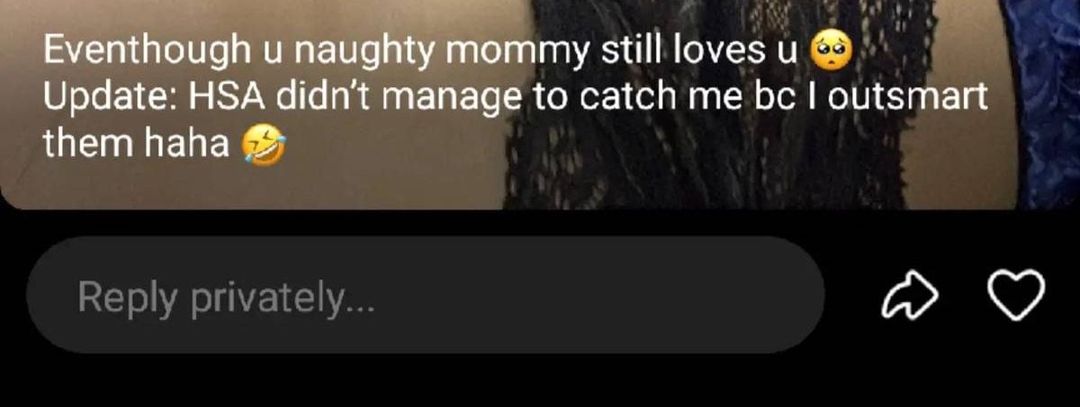 One screenshot allegedly showed the creator claiming that the Health Sciences Authority (HSA) “didn’t manage to catch” her because she had “outsmarted” authorities.