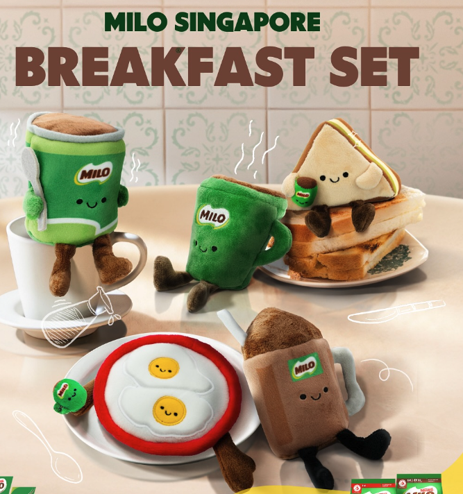 Launched on Saturday (26 Apr) to celebrate Milo’s 75th anniversary in Singapore, the Milo Breakfast Party plushies come in the form of iconic local breakfast items like kaya toast, Milo peng, a Milo cup, a Milo tin, and soft-boiled eggs.
