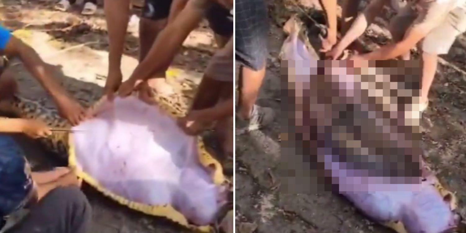 A horrifying video capturing the moment villagers cut open the python’s bloated belly has recently gone viral online, as reported by Indonesian news outlet Antara News.