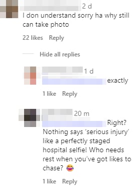 While Chia’s post drew an outpouring of support and well wishes, some also questioned why she had taken the time to pose for what appeared to be carefully composed photos.