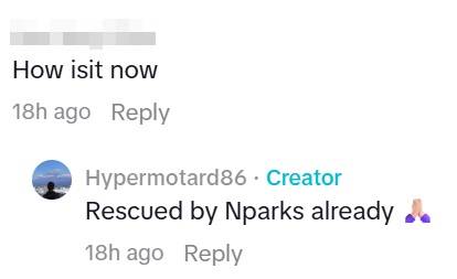 Another concerned netizen also asked what had happened to the animal, to which the OP replied that it was rescued by the National Parks Board (NParks).