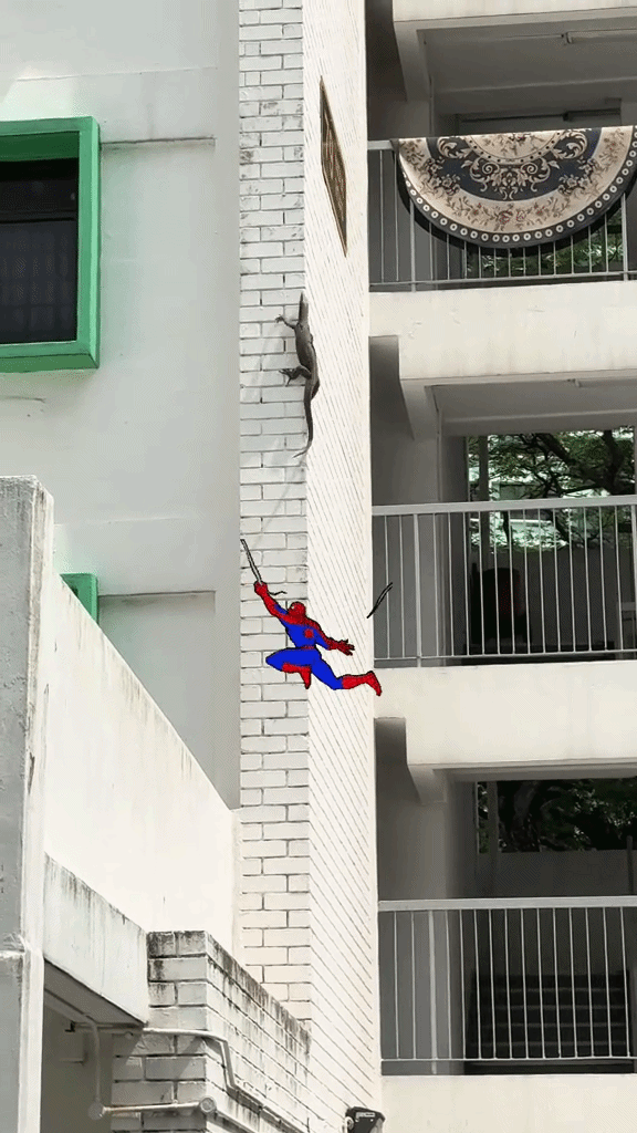 The OP also added an animated Spider-Man in the video to express their awe at the monitor lizard’s climbing prowess.