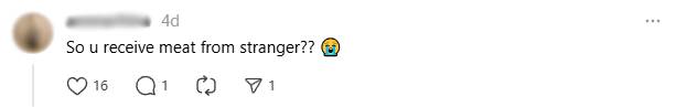 One netizen was just shocked that the OP would receive and take meat from a stranger.