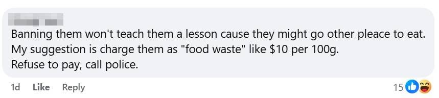 One netizen commented that “banning them won’t teach them a lesson” as offenders could simply dine elsewhere.