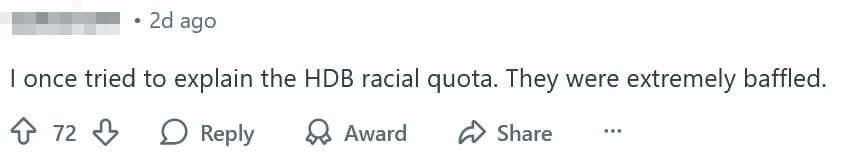 “I once tried to explain the HDB racial quota. They were extremely baffled,” another netizen claimed.