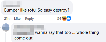 Another netizen was so shocked at the ease of the bumper falling off that they didn’t even care about who to blame for the accident.