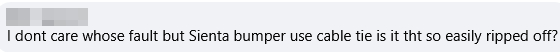 They jokingly questioned if the Toyota Sienta used cable ties to secure its bumper.