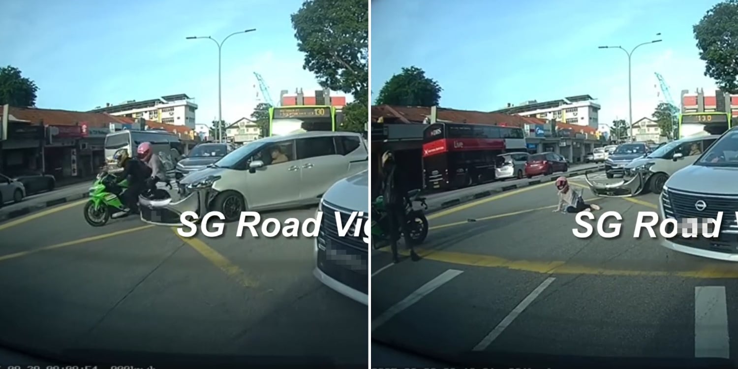 An unfortunate driver lost the front bumper of their car in a collision with a motorcycle on Balestier Road.
