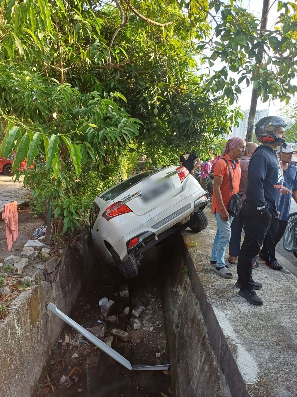Upon arrival at the scene, the Penang Fire and Rescue Department (JBPM) found two individuals in the ditch, waiting for rescue.