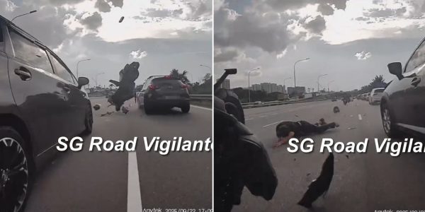 Motorcyclist flung into air after crashing into car on TPE, narrowly misses another rider