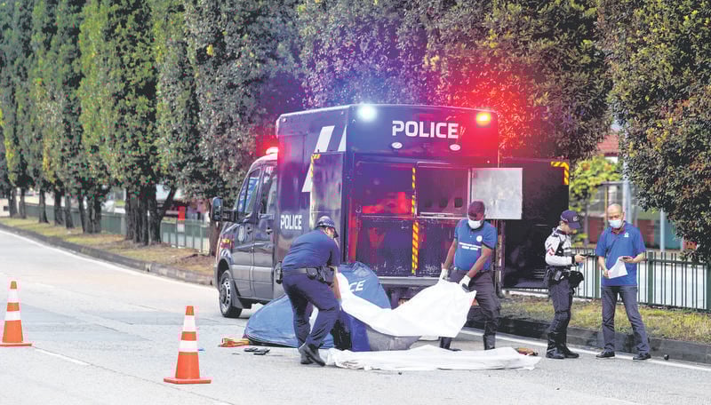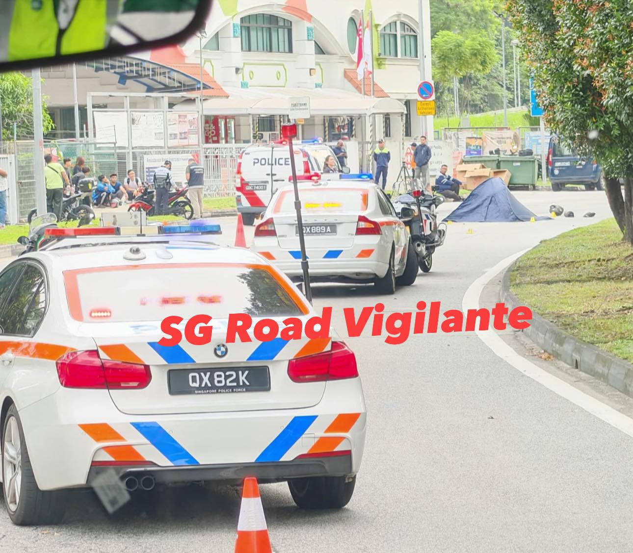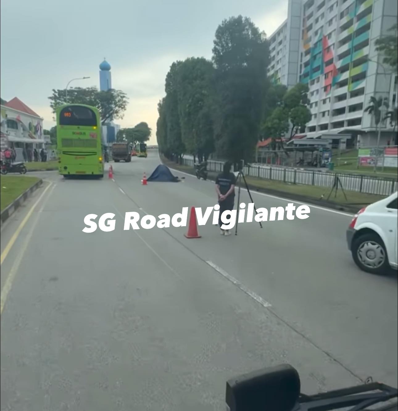 Other images posted by SG Road Vigilante on Facebook showed a police blue tent covering the body.