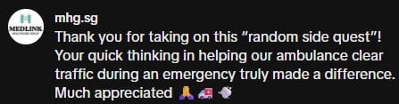 Mr Teo’s help was certainly appreciated by Medlink Healthcare Group (MHG), an operator of private ambulance services.