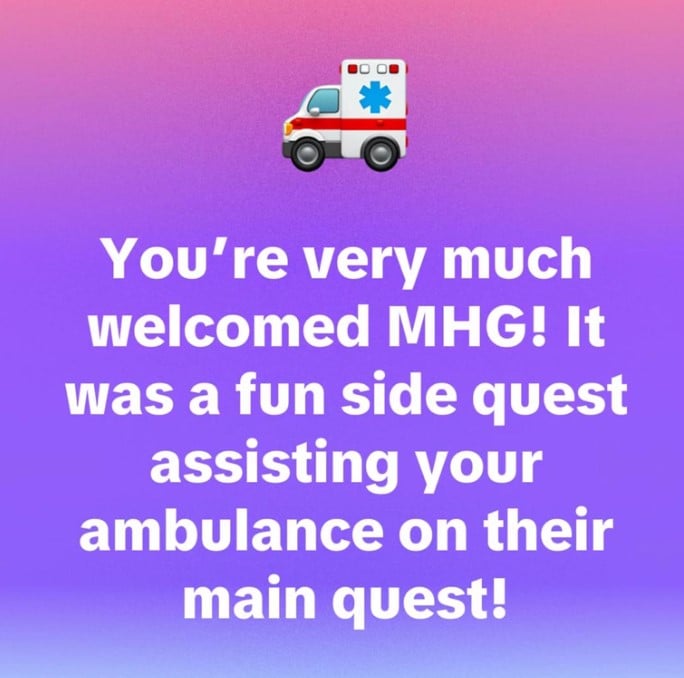 “It was a fun side quest assisting your ambulance on their main quest!” he also quipped.