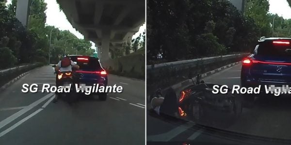 Motorcyclist fails to brake in time & hits car in Loyang, falls off onto road
