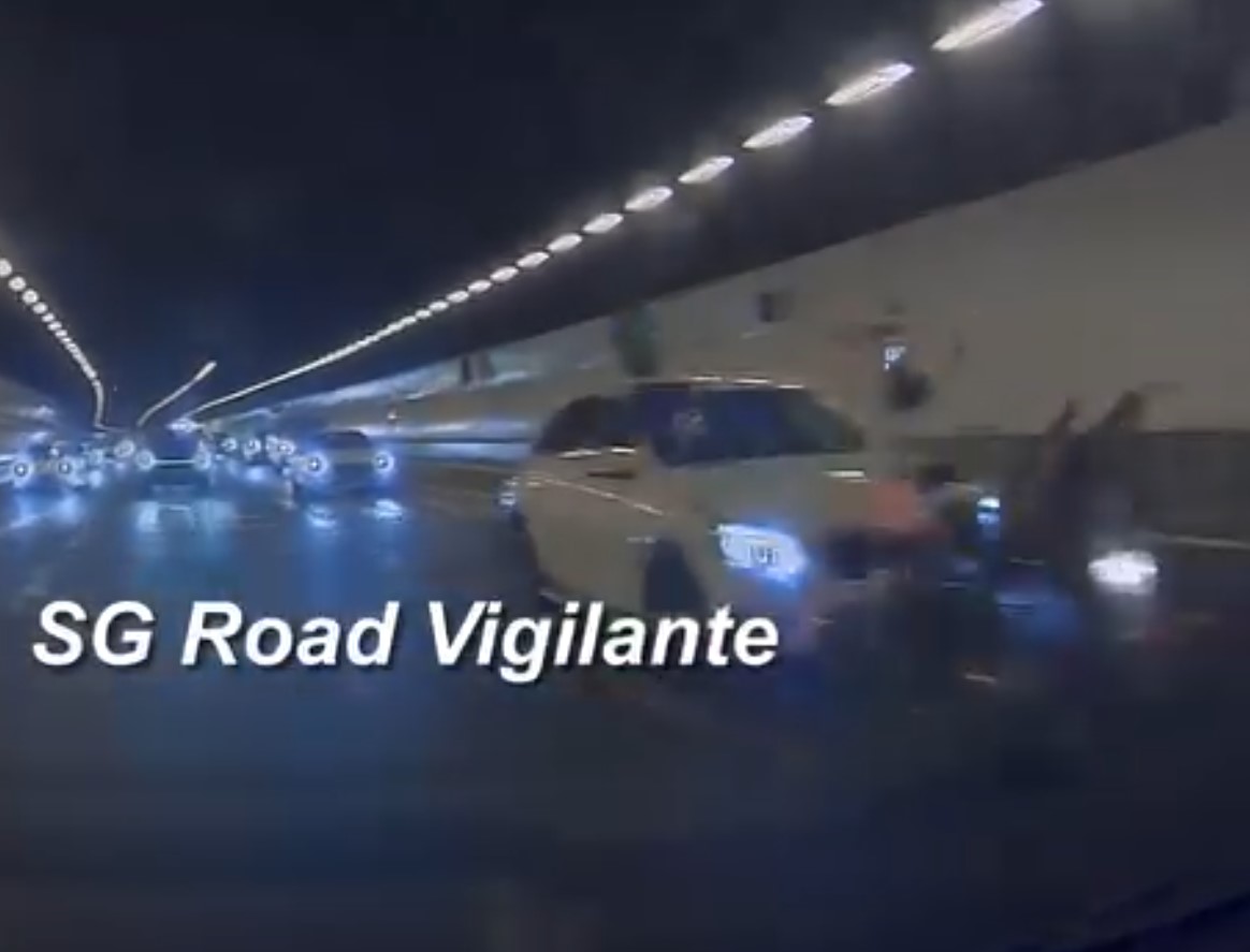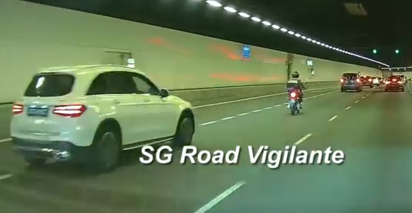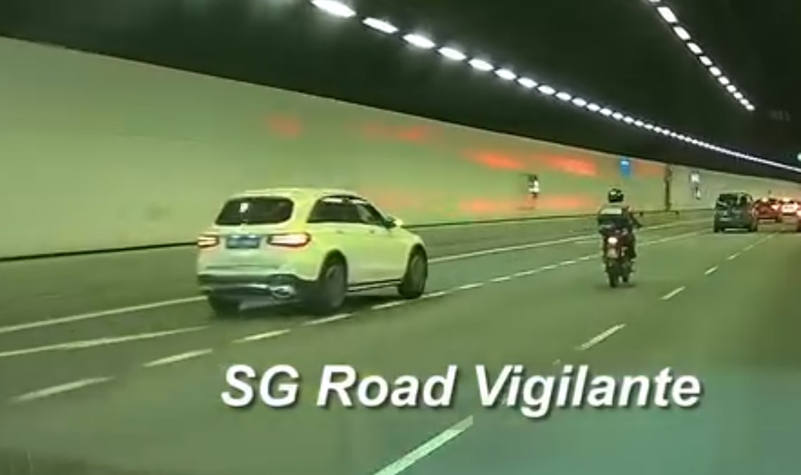 Footage of the incident posted by SG Road Vigilante on Facebook showed the white Mercedes slamming into the motorcycle from behind.