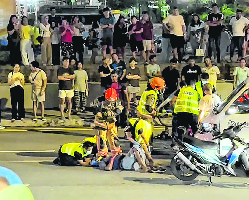 Footage from a Shin Min Daily News reader showed rescue personnel attending to a man lying on the road.