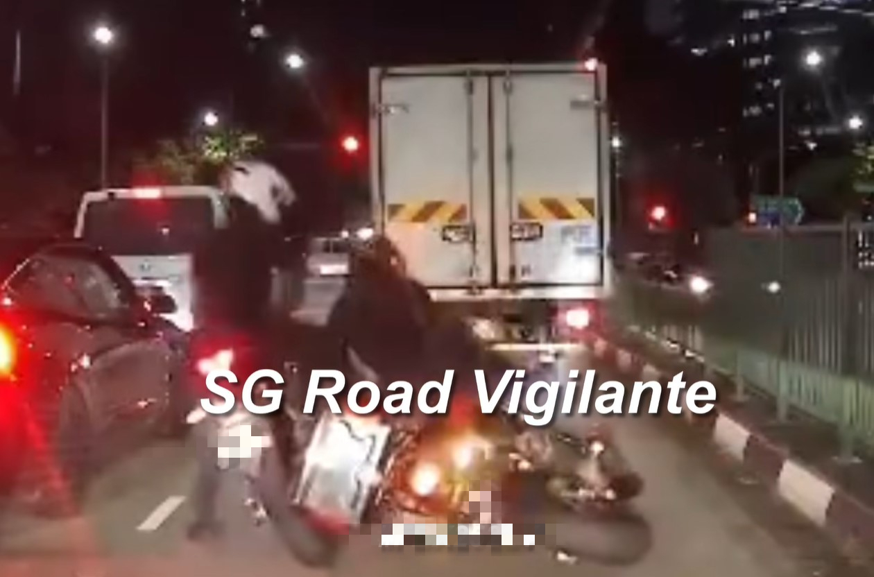 Singapore motorcyclist accidentally falls while doing stretches, apologises to other rider