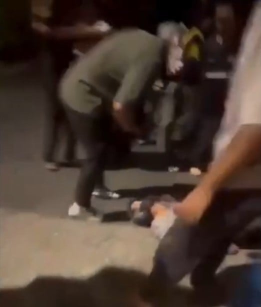 Later, paramedics are seen tending to his injuries.