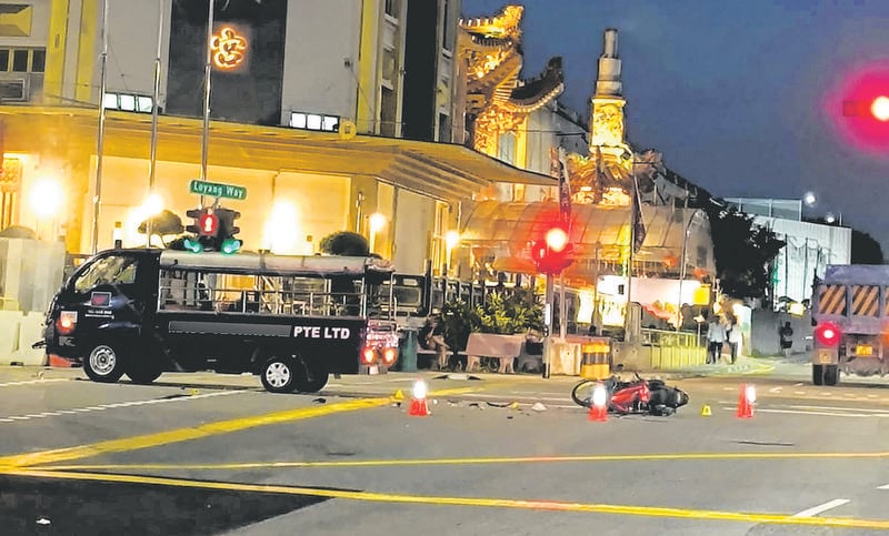 An eyewitness told Shin Min that he saw a motorcycle flipped on its side on the road with a dark-coloured lorry nearby.