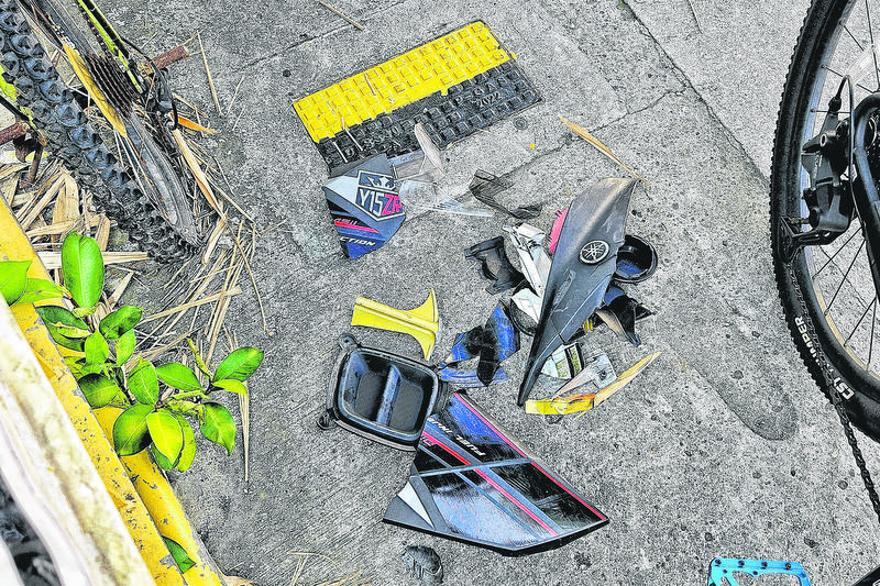 When reporters visited the location, bloodstains were observed on the road and motorcycle parts left on the pavement.
