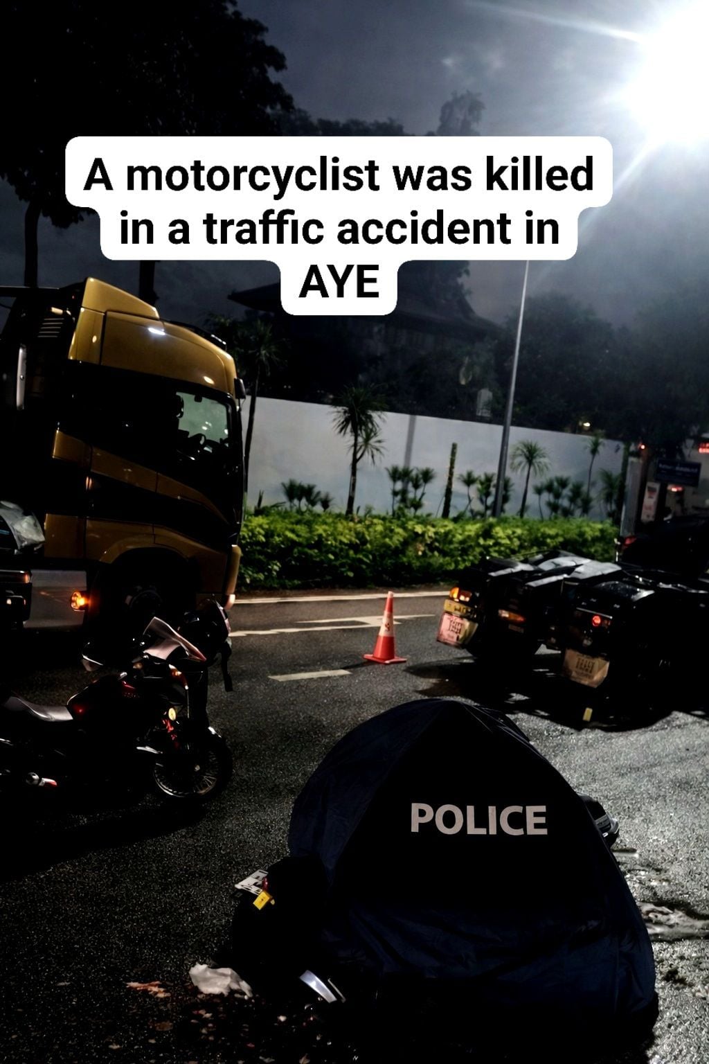 An image of the aftermath posted by Singapura Channel on Facebook showed a police blue tent covering a motorcycle lying on its side.