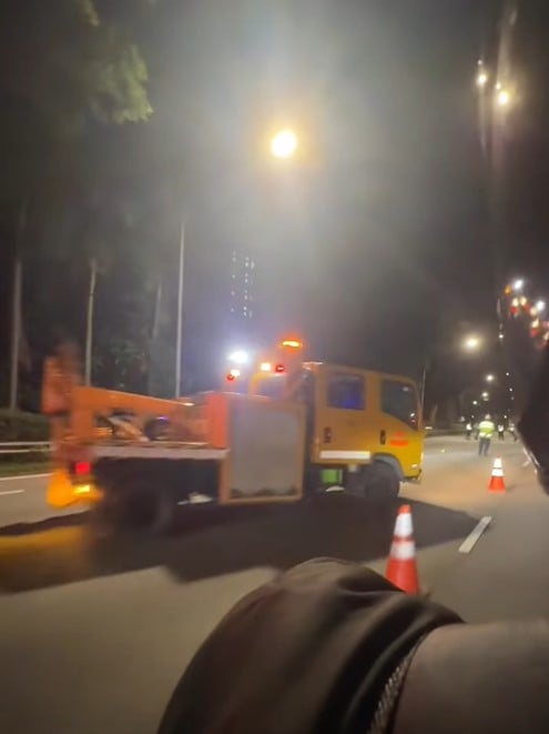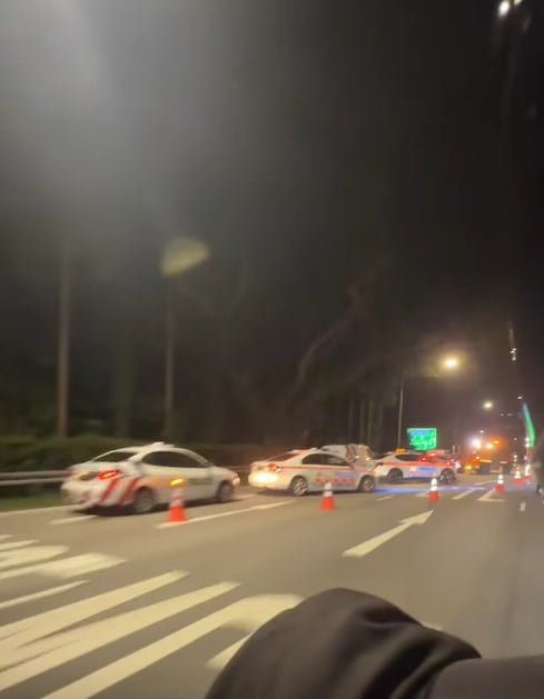 They blocked off two lanes on the left side of the AYE, which were also cordoned off with traffic cones.