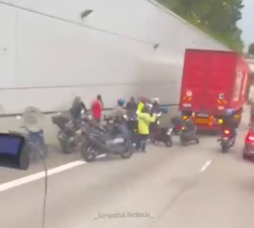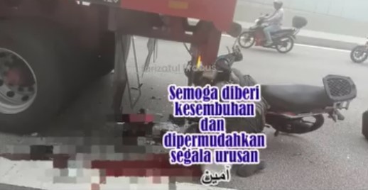 Motorcyclist seen lying on the road behind trailer truck on AYE