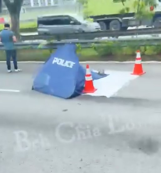 Beh Chia Lor on Facebook posted footage of the aftermath. The clip showed a police blue tent in the far-right lane of the expressway.