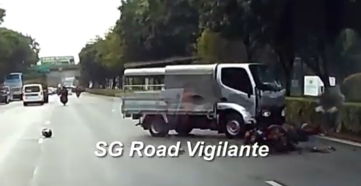 A video of the accident was posted on SG Road Vigilante on Facebook, showing the lorry ramming into the motorcyclists.