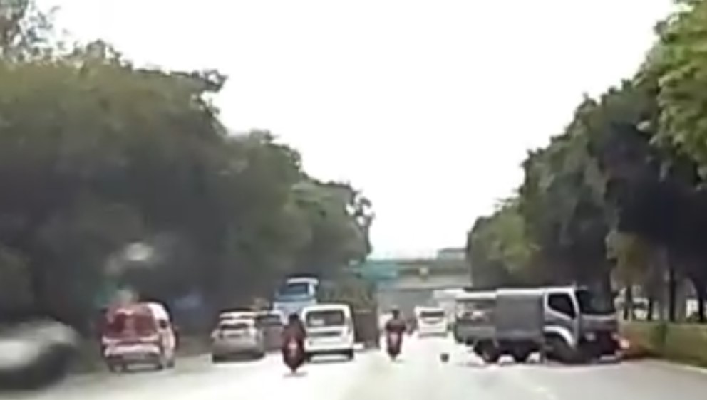 Lorry hits motorcyclists after swerving from lane 4 to lane 1