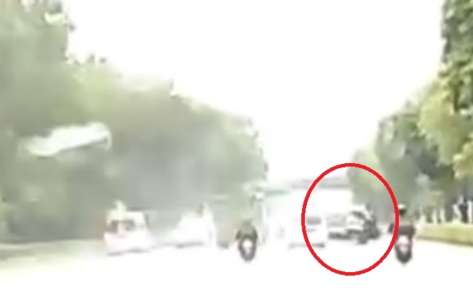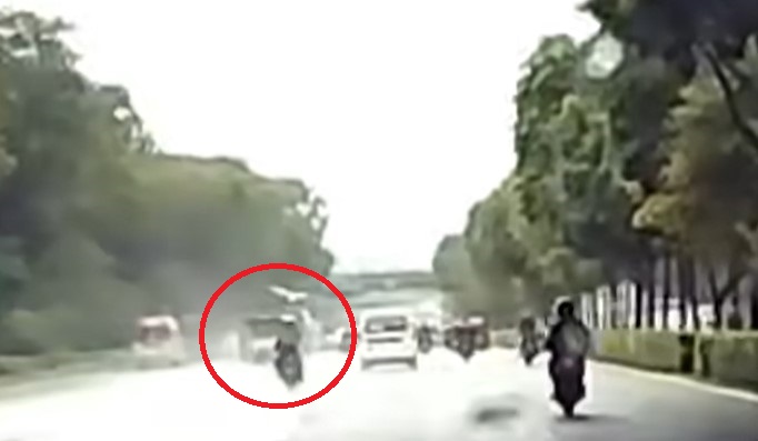However, it suddenly swerved to the right across four lanes, hitting two motorcyclists.