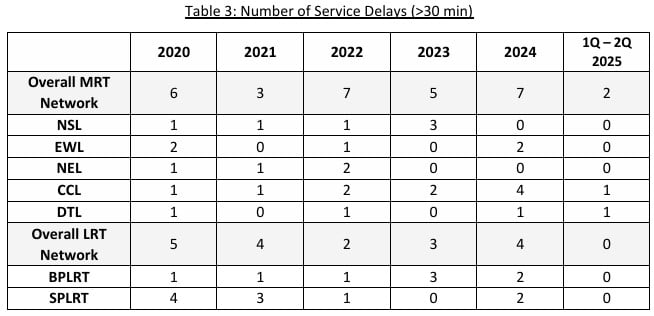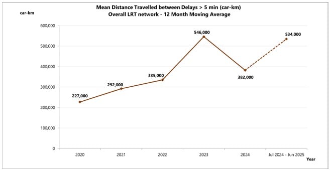 For the LRT, no service delays were recorded in the first six months of 2025.