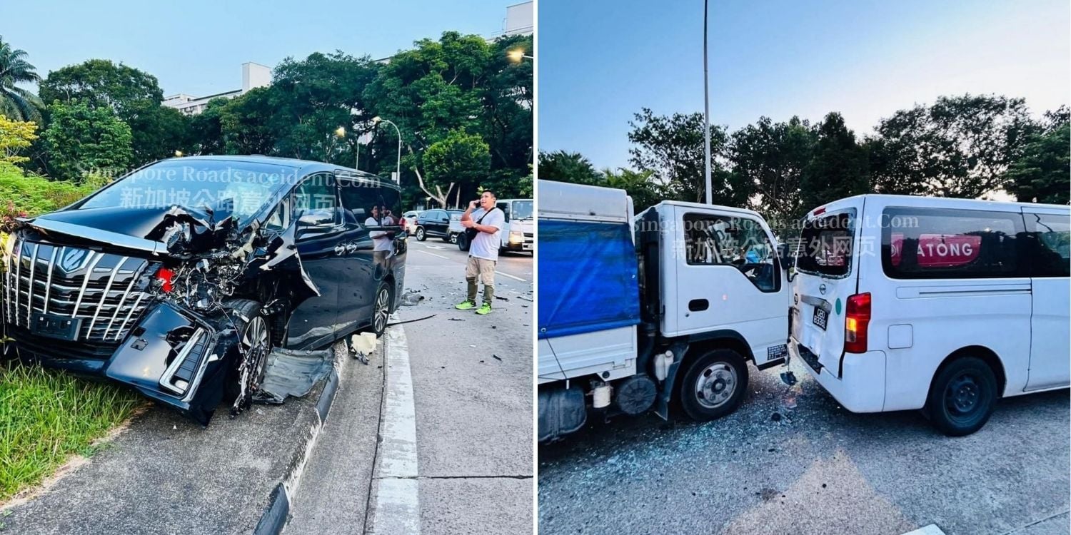 A multi-vehicle collision involving a lorry, a minivan, and a black Toyota Alphard unfolded along the PIE towards Changi on Thursday (28 Aug) morning, near the Jalan Eunos exit.
