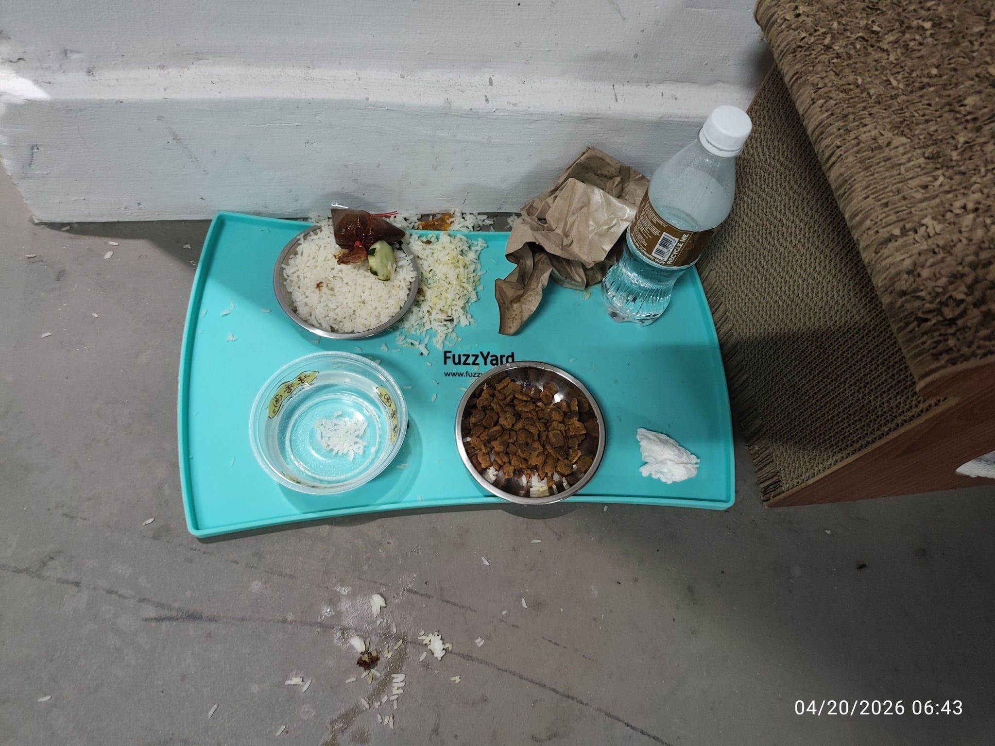 On Monday (20 April) morning, Ms M spotted a mess at the community cats’ feeding tray.