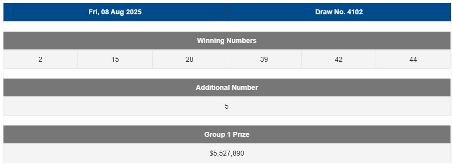 The next TOTO draw will be next Monday (11 Aug), for an estimated jackpot of S$1 million.