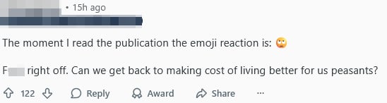 “Can we get back to making cost of living better for us peasants?” they wrote.